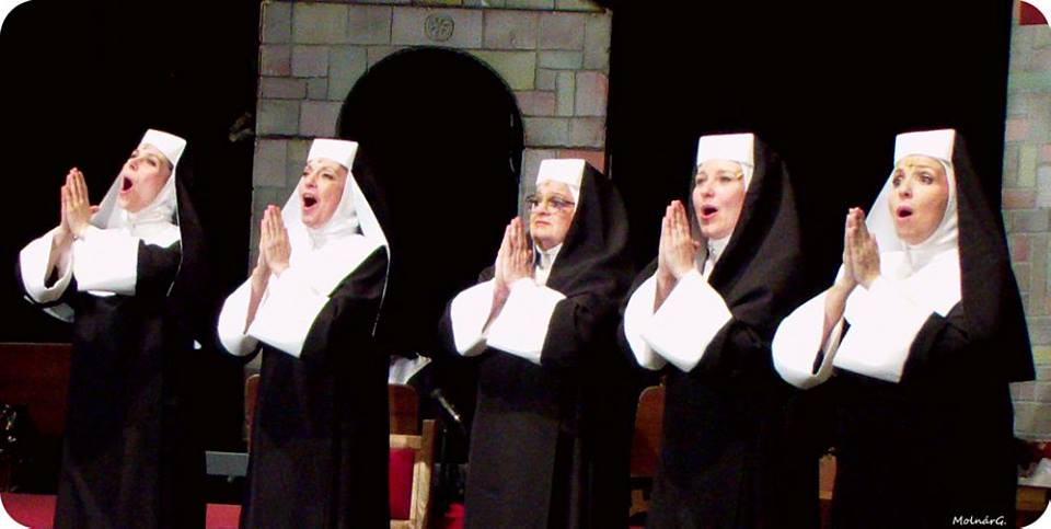 Dan Goggin Apácák musicaljét mutatja be Kökényessy Ági rendezésében a Hadart Művészeti Társulat. Goggin kedves és humoros műve 1985-ben elnyerte a legjobb off-Broadway-musical címét. Magyarországon először a Madách Színházban láthattuk, Psota Irénnel a főszerepben. Lehetséges több mint ötven gombamérgezésben elhunyt apácáról és az afrikai lepratelepen átélt évekből fergeteges vígjátékot írni? Bizarr ötlet, de Dan Gogginnak sikerült. A gombamérgezést túlélt öt apáca mindent megtett, hogy összegyűjtse a pénzt 52 társuk illő temetésére: céget alapítottak, vallásos témájú képeslapokat árultak, sőt, saját holmijukat is pénzzé tették, de az így befolyt összeg is csak 48 apáca temetésére elég. Így az öt túlélő úgy dönt, hogy jótékonysági koncertet rendez. A Grease című musicalből adnak elő részleteket, és a Mount-Saint-Helen’s School színpadán elkezdődik az "apácashow". A vidám dalokból és szellemesen megírt jelenetekből álló gálaest alatt lassan-lassan megismerjük a szereplőket, és kiderül, hogy a nővéreknek csak a ruhájuk egyforma. Mind-mind külön személyiség, más múlttal, álmokkal és vágyakkal. Szereposztás Mária Regina nővér VOITH ÁGI
