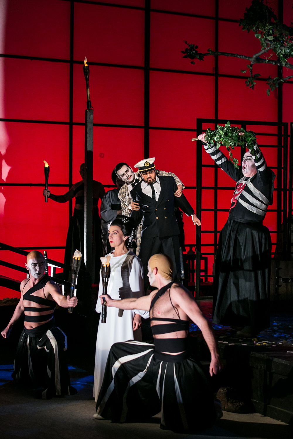 Megvirradt. Szuzuki aludni küldi holtfáradt úrnőjét. Megjelenik Pinkerton, Sharpless és Kate, Pinkerton felesége. Szuzuki halálra rémül, amikor megtudja, ki az idegen asszony, és hogy miért jöttek. Tisztán érzi: ezt a csapást Cso-Cso szan nem éli túl. Végül mégis vállalkozik a lehetetlenre: elkéri a gyermeket anyjától, hogy Kate magával vigye. Későn ébred fel Pinkerton lelkiismerete, s felindultan elrohan. Váratlanul megjelenik Butterfly: még semmit sem sejt, ujjongva keresi Pinkertont... aztán dermedt csend veszi körül, végül rádöbben a valóságra. Fiát azonban csak az apának adja oda. Amikor magára marad, előveszi a tőrt, mellyel egykor édesapja vetett véget életének. Szuzuki még egy utolsó kísérletet tesz, hogy eltántorítsa úrnőjét végzetes szándékától: beküldi kisfiát. Cso-Cso szan azonban már döntött. Elbúcsúzik gyermekétől, és követi az írás szavait, melyeket a tőr pengéjéről olvas el: „Becsülettel halj meg, ha becsülettel nem élhetsz tovább."