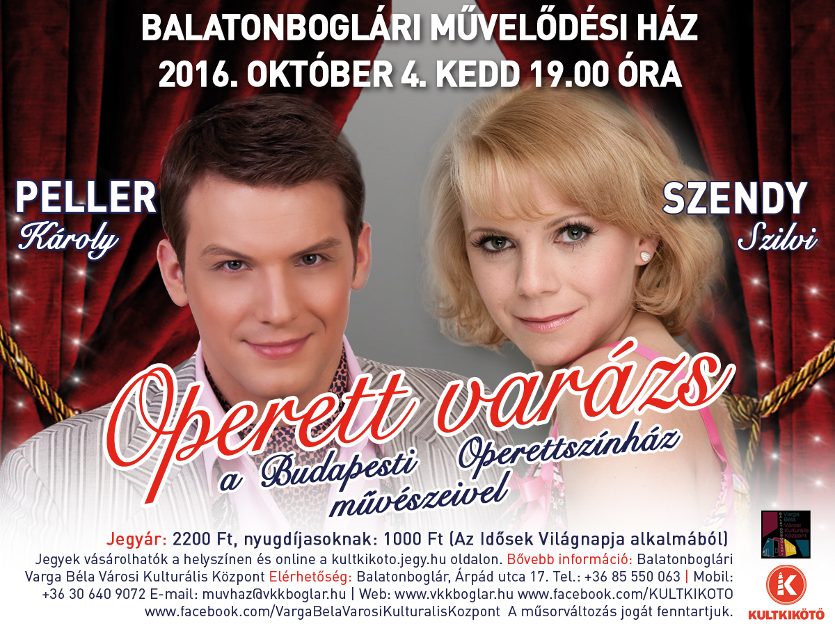 A Budapesti Operettszínház művészei; Szendy Szilvi, illetve Peller Károly október 4-én a Kultkikötő szervezésében a legszebb és
