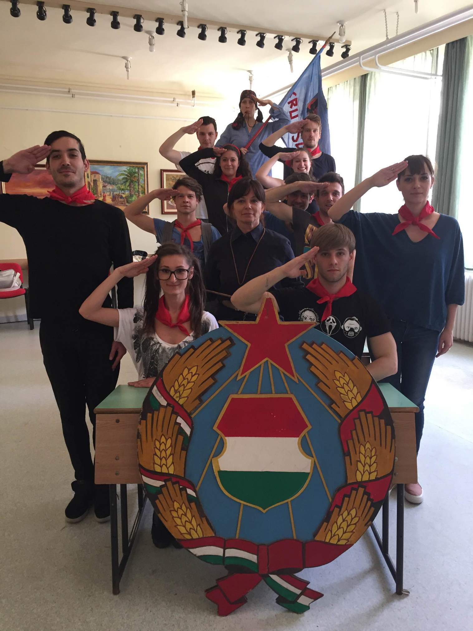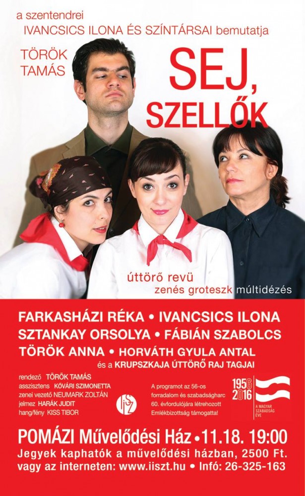 A zenés darab groteszk múltidézés. Nehéz lenne egyazon stílusbéli jelzõvel meghatározni, mert a történet eredeti dokumentumokra épül, az 50-es évek fiatal pedagógus-házaspárjának abszurdba hajló élethelyzeteit jeleníti meg. Egy Somogy megyei apró falu bárói kastélyból átalakított körzeti általános iskolájával, írástudatlan cselédbõl szakfelügyelõvé és kultúrkomisszárrá váló nõalakjával, a tsz-esítések viharkabátos fiatal elvtársával, a tizenhat gyerekes államosított cigányasszonyával valódi XX. századi kavalkád. Ebben a sokszor életveszélyes helyzetben kell eligazodnia Katónak, a fiatal tanítónõnek, akibõl egy párthatározat elõbb lenini néptanítót, majd iskolaigazgató pajtást kreált. A számtalan tragikus és komikus helyzet igényesen feldolgozott mozgalmi dalokkal, szórakoztató úttörõ-revü is lehetne, ha nem szõné át a folyamatos fenyegetettség… A beadott földek miatt, a titkos keresztelõk miatt, a beszolgáltatások miatt, és a Rákosi Mátyás 60. születésnapjára készülõ nagyoperett miatt… Kató, a tanítónõ kulturális mûsorokat, színházi elõadásokat rendez, közben megszüli három gyermekét; és 1956-ra veszélybe kerül eddig fennem épített élete. A színdarab pontos kórkép 60 év távolából a közelmúlt magyar valóságáról.