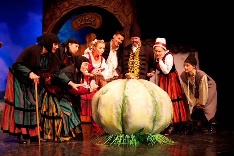 Aki még nem látott csikót tojásból kikelni, az bizonyára sosem járt Rátóton. Ezt a hiányosságát azonban most könnyedén pótolhatja, mert gyermekszínházunk éppen arrafelé veszi az irányt, és szívesen odakalauzolja az érdeklődőket. Megéri a fáradságot, mert nincs a világnak még egy sarka, ahol a bírót s a vének tanácsát akkora ésszel áldotta volna meg a teremtő, mint abban az aprócska faluban. Már a fél ország rajtuk kacag, de ők nem tágítanak azon hiedelmüktől, hogy az a hatalmas úritök, amit egy jámbor falubéli hozott be nékik a mezőről, az bizony egy csikótojás, ami megfelelő melengetés után egy érett lovacskát fog „elleni”. A feladatra jobb jelöltet nem találván, ők maguk ülnek a tökre, s felváltva költögetik naphosszat… Lesz is ebből valami: ha ló nem is, hát egy fergeteges mese kacagással, nótával, harmonikaszóval…