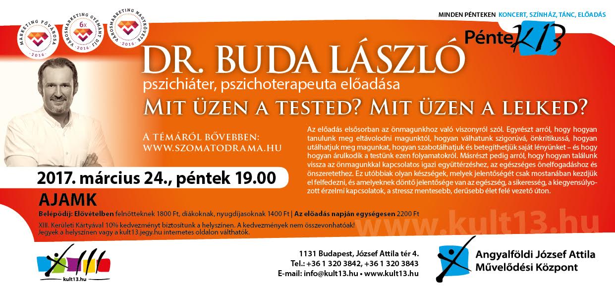 Belépődíj: Elővételben: felnőtteknek 1800 Ft, diákoknak, nyugdíjasoknak 1400 Ft, Az előadás napján egységesen: 2200 Ft
