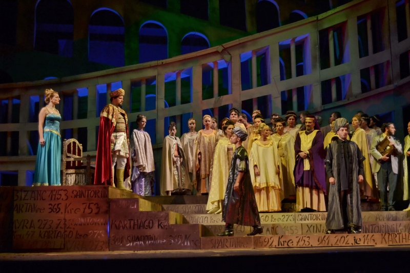 Rituális külsőségek között érkezik a császárné, aki rövid beszédet intéz alattvalóihoz, majd fogadja hódolatukat. Iréne láthatóan igen feszült, de azért rövid flörtbe bocsátkozik Laszkarisszal. A női kar produkciója után Zenóbiával folytat izgatott párbeszédet, aki átadja neki a szultán levelét, mely a Bizánc eleste utáni új élet ígéretét hordozza. A császárné széles ívű áriában vall a hatalom és a pompa utáni leküzdhetetlen sóvárgásáról, a bukásért császári férjét okolja. Az udvar népe izgatott és fél.