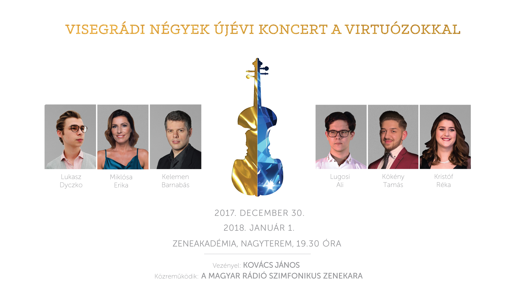 Az ünnepi koncerten a Virtuózok eddigi évadainak fődíjasai, Kristóf Réka, Kökény Tamás és Lugosi Dániel Ali először lép együtt színpadra. További népszerű virtuózok, Szüts Apor és Teo Gertler mellett pedig a Visegrádi Négyek országainak vendégművészei is bemutatkoznak majd: Łukasz Dyczko, lengyel szaxofonista, a Fiatal Zenészek Eurovíziós versenyének első helyezettje és Jan Vojtek, cseh zongoraművész, a Zeneakadémia hallgatója.