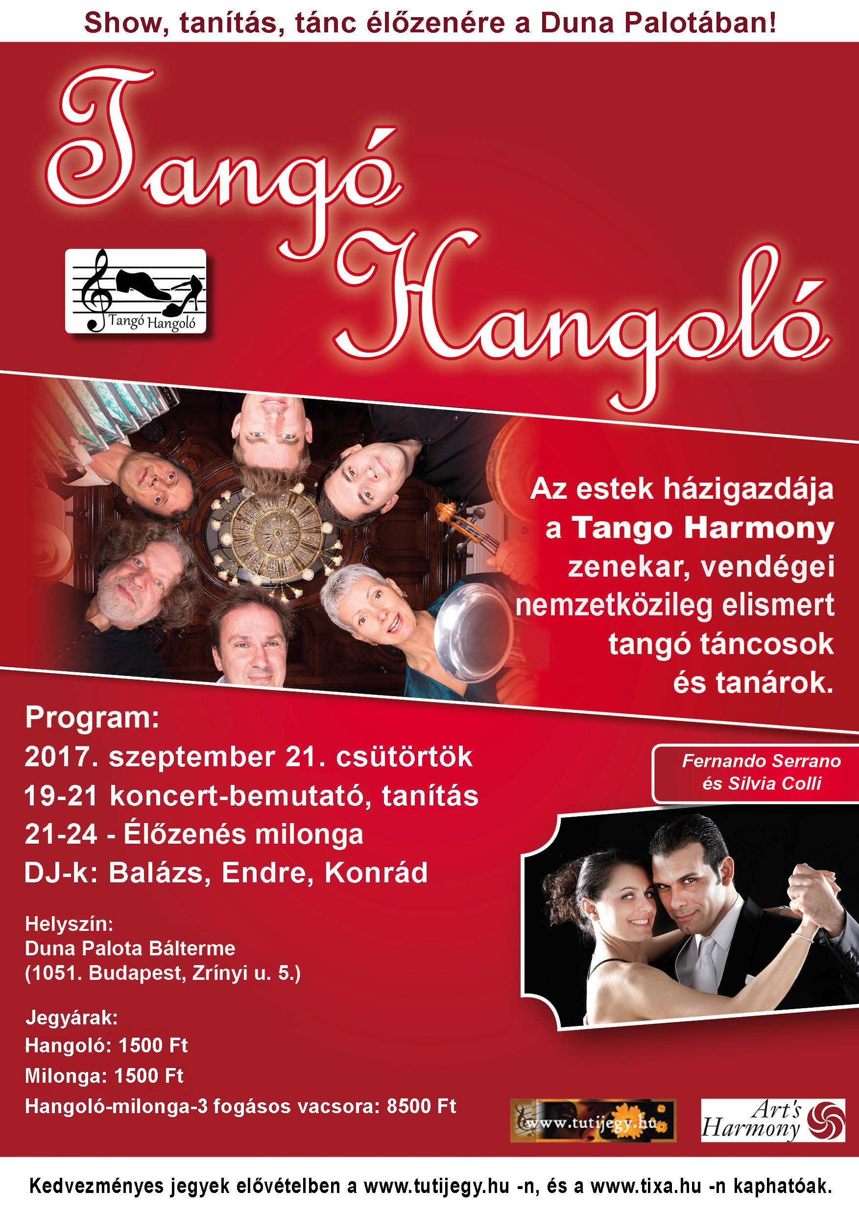 Az este folyamán a Tango Harmonyzenekar élőzenéjére és tangó slágerekre táncolhatsz!