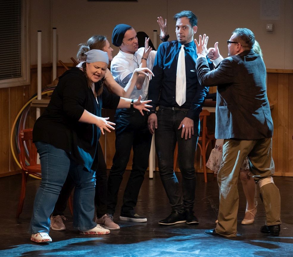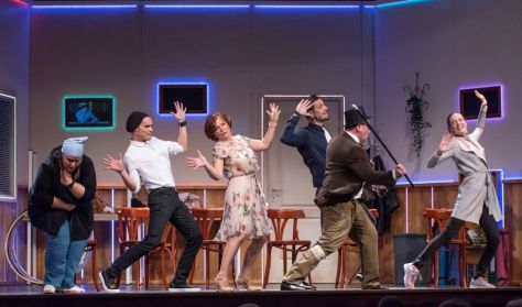 Fülbemászó dallamok és sziporkázóan szellemes szövegek röpítik a nézőt a mjuzikelkámedi felhőtlen, kacagtató, fényesen csillogó világába, ami ez esetben nem más, mint a Piróth Gyula Művelődési Ház II/6-os terme egy esős csütörtök délutánon.